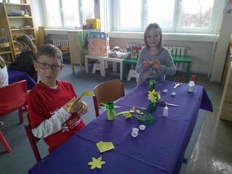 … und so kamen alle Kinder am Freitag, dem 31.März 2023 zu unserer Osterwerkstatt, um für das Osterfest zu basteln. In allen Gruppenräumen konnten die Kinder kreativ sein. Dabei entstanden lustige Osterhasen aus kleinen Baumstämmchen, farbenfrohe Tulpen für das Fenster, Osterlämmchen als Eierbecher für bunte Ostereier und zauberhafte Osterglockensträuße für den Tisch. Überall wurde eifrig geschnitten, geklebt, gemalt und es zog Lachen beim Werkeln durch´s Haus, denn wir hatten viel Spaß. Am Ende dieses kurzweiligen Nachmittags bestaunten die Kinder mit leuchtenden Augen ihre gebastelten Osterdekorationen, die nun zu Hause die Zimmer schmücken und ließen sich genüsslich Donuts zum Vesper schmecken.