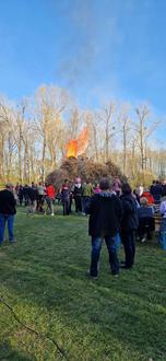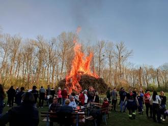 Osterfeuer auf dem Sportplatz Sausedlitz begrüßen. Den Startschuss gaben pünktlich zum Festumzug, mit Lampions und Fackeln, die Jugendfeuerwehr Löbnitz und Sausedlitz zusammen, was in unserem kleinen Dorf auf traditionelle Art bekannt ist. Dafür schon einmal ein großes Dankeschön an die Jugendfeuerwehr Löbnitz mit ihren Jugendleitern, die uns dabei schon seit vielen Jahren unterstützen. So auch einen lieben Dank an die TLF Besatzung von Löbnitz, die das gesamte Osterfeuer mit absicherten. Nach dem Festumzug wurde das Osterfeuer durch die Besucher symbolisch angezündet.