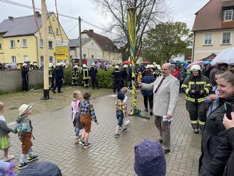 Trotz, dass sich zu Beginn der Veranstaltung das Wetter nicht wie erhofft von seiner besten Seite zeigte, besuchten zahlreiche Einheimische und viele Gäste das Maibaumfest. Mit voller Manneskraft stellten ganz traditionell unsere Kameraden der Freiwilligen Feuerwehr Löbnitz den neu gestalteten Maibaum auf den Vorplatz des Kirchgartens „Ave von Schönfeld“ der evangelischen Kirche. Das kunterbunte Rahmenprogramm gestalteten in diesem Jahr die Kinder und Erzieherinnen der Kita Schwalbennest sowie der Männergesangverein 1860 Löbnitz e. V.