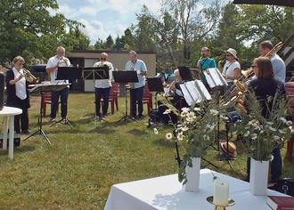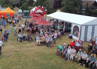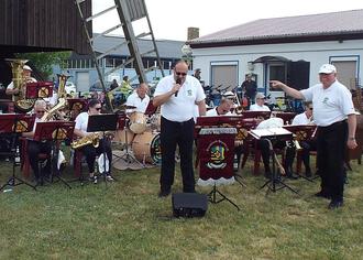 Besucher konnten bei deftigen Speisen wie Wildschwein oder Kuchen von den Landfrauen Löbnitz, dem Open-Air-Gottesdienst mit dem Pfarrer Matthias Taatz in Begleitung der St. Michaelis-Bläser und auch dem Blasmusikverein Schenkenberg e. V. genießen.