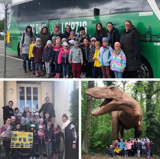 Am 07.04.2024 ging es endlich los. Unsere Marienkäfergruppe aus dem Kinderhaus „Schwalbennest“ Löbnitz machte sich auf zu einem aufregenden Abenteuer. Um 08.00 Uhr trafen wir uns in der Kita und konnten dank Firma Norand, welche uns den Bus sponserte, unsere zweieinhalbstündige Fahrt starten. In Kleinwelka stiegen unsere 17 Vorschüler mit großen Augen aus und hielten schon Ausschau nach den ersten Dinos. Wir verbrachten vier tolle Stunden im Park. So ging es gleich zu Beginn zur großen Ausgrabungsstätte, wo ein riesiges Dinosaurierskelett vergraben lag. Außerdem versteckten sich im Sand einige Dino-Krallen, die mit nach Hause genommen werden durften.