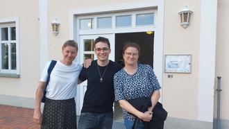 Ein fröhliches Wiedersehen von Robert Pohlers und seinen ehemaligen Lehrerinnen, Frau Rahn und Frau Wolf von der Thomasschule Leipzig, an der er vor 10 Jahren das Abitur abgelegt hat.