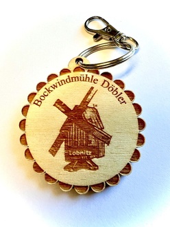 Suchen Sie nach einer kleinen Erinnerung, einem besonderen Geschenk oder einem Mitbringsel aus Löbnitz? Unser handgefertigter Schlüsselanhänger aus Holz zeigt die Löbnitzer „Bockwindmühle Döbler“ – ein echtes Highlight für alle, die die Region lieben oder einfach ein schönes Andenken suchen.