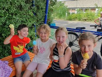 Das Schuljahr ist nun schon 4 Wochen alt und bisher zeigte sich der Sommer von seiner besten Seite. Die hochsommerlichen Temperaturen brachten uns dreimal eine kühlende, süße Überraschung. Das Eismobil rollte auf den Schulhof. Alle suchten sich in jeder dieser 3 Wochen eine Kugel Eis aus und schleckten diese genüsslich. Wir sagen vielen Dank für diese leckeren Überraschungen.