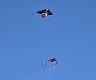 Mehr als 50 Drachen gingen an den Start, viele mit Startnummern, einige ohne.