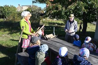 Woher kommt das Mehl? Das wollte am Mittwoch (24.09.2025) die Wackelzahnbande aus dem Löbnitzer Kindergarten wissen. Sie besuchte bei bestem Wetter die Döbler Mühle. Dort lernten sie zuerst vom alten Müller, welche Geräte man früher für den Haushalt und die Arbeit auf dem Feld brauchte. Da gab es einige Geräte zu bestaunen, die man heute gar nicht mehr kennt.