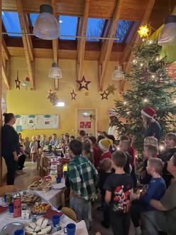 Am 12.12.2024 war es soweit, die Kinder in Schönnewitz feierten Weihnachtsfeier. Alle Kinder versammelten sich als erstes vor dem Tannenbaum und sangen gemeinsam Weihnachtslieder. Das Frühstück fand traditionell im Flur vor dem Tannenbaum statt. Ein großes Dankeschön an alle Eltern für die liebevoll gestalteten Obstplatten, Schnittchenplatten, die gekochten Eier und die bereitgestellten Getränke. Wir, dass Erzieherteam, hatten diesmal eine besondere Überraschung für unsere Kinder. Das Märchen „Hänsel und Gretel“ wurde für die Kinder einstudiert und zur Weihnachtsfeier aufgeführt. Alle Kinder waren begeistert ihre Erzieherinnen verkleidet als Hänsel, Gretel oder Hexe zu sehen. Doch das absolute Highlight begann mit dem Klopfen an die Gruppenzimmertüren. Der Weihnachtsmann hatte den Weg ins Kinderhaus gefunden. Mutig holten sich zuerst alle Krippenkinder etwas aus dem Sack des Weihnachtsmannes. Die Kinder im Kindergartenbereich sagten fleißig alle gelernten Gedichte auf oder sangen voller Aufregung Lieder. Am Ende strahlten alle Augen der Kinder. Wir blicken auf eine wundervolle Weihnachtsfeier zurück und freuen uns auf das kommende Jahr 2025. An dieser Stelle möchten wir uns bei allen Kindern und Eltern für das entgegen gebrachte Vertrauen bedanken, wünschen frohe und besinnliche Festtage und ein wunderschönes Jahr 2025.