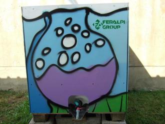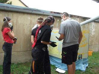 +++ Endlich war es soweit und der von der Feralpi Group Riesa kostenlos zur Verfügung gestellte Wasserbehälter am Mopedunterstand erhielt seine künstlerische „Note“. Gemeinsam mit Schülern gestaltete der Graffiti-Künstler C. Langer erste Entwürfe und brachte diese dann auf die Flächen des Behälters auf. Dass sprayen nicht ganz so einfach ist, wie es manchmal aussieht, merkten die Mädchen und Jungen recht schnell bei ihren ersten Sprühversuchen. Aber das alte Sprichwort behielt recht – Übung macht den Meister. Wir bedanken uns bei allen Mitwirkenden für ihre Zeit und Unterstützung! +++