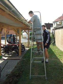 Noch bei schönstem Sonnenschein startete unser Hausmeister, Herr Däbritz, mit Schülerinnen und Schülern ein Projekt, um den Mopedunterstand wetterfester und wartungsfreier zu gestalten. Den Bau des Unterstandes hatten Schüler im Rahmen der Woche der Demokratie bereits als Rankingsieger unter vielen Ideen umgesetzt. Da die finanziellen Mittel damals nicht für alle Arbeiten reichten, legten jetzt zwei Sponsoren noch einmal „eine Schippe“ drauf. 400 EUR kommen vom Jugendforum des Landkreises Meißen und 500 EUR aus dem Budget des Bundesprogramms Demokratie Leben. Dieses Projekt wird im Rahmen des Bundesprogramms „Demokratie leben!“ durch das Bundesministerium für Familie, Senioren, Frauen und Jugend gefördert. Nähere Informationen dazu erhält man unter www.demokratie-leben.de.