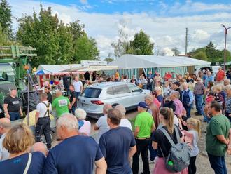 Traditionell präsentierte sich das Wetter am zweiten Septemberwochenende von seiner besten Seite und so konnten der Heimatverein Ganzig-Kleinragewitz und der Sportverein Ganzig bei eitel Sonnenschein zahlreiche Gäste rund um das Dorfgemeinschaftshaus begrüßen. Ja und im besten Lichte präsentierte sich nicht nur Wettergott Petrus, sondern auch der Kürbis von Ortsvorsteher André Pinkert. Dieser brachte stolze 308 kg auf die Waage und spielte zudem beim Kürbisschlachtfest am 19.10.2025 eine tragende Rolle. Noch besser machten es nur Rekordmeister Matthias Jähnigen mit seiner orangen Panzerbeere, welche 315 kg wog und Jirka Krell, dessen Gemüse sage und schreibe 509,5 kg auf dem Display der digitalen Zugwaage anzeigte. Sehr zur Freude der Zuschauer, welche die gärtnerischen Leistungen, mit viel Applaus honorierten. Auch die präsentierten Zucchinis waren nicht von schlechten Eltern. Am Ende konnte Titelverteidiger Manfred Gotter aus Bad Liebenwerda mit 20,7 kg diesen Wettkampf erneut für sich entscheiden. Zwei nicht so weit Angereiste konnten derweil bei der Konkurrenz um die größte Sonnenblume triumphieren. Das Geschwisterpaar Basti und Maxym Häntzsch aus Ganzig verwiesen mit ihrem gelben Korbblüttler mit einer Länge von 4,30 m die übrigen fünf Teilnehmer auf die Plätze. Heiß her ging es im wahrsten Sinne des Wortes auch beim Kürbissuppenwettstreit. Mussten die Suppen doch vor der Verkostung in der Küche des Dorfgemeinschaftshauses auf Betriebstemperatur gebracht werden. Dies gelang den Verantwortlichen allerdings bravourös, sodass am Ende des Abends eine Siegerin gekürt werden konnte. Nach Auszählung der 101 Stimmzettel konnte sich Alya Villwock vor Annegret Reiprich durchsetzen. Das Podium komplettierte Titelverteidigerin Marlies Sommer. Mit der Auszeichnung der Suppenköche endete am Abend auch die große Siegerehrung im Festzelt. Anschließend konnte das Tanzbein kräftig geschwungen werden. Unterbrochen wurde Jung und Alt dabei nur von der Ehrenabteilung des ehemaligen Ganziger Jugendclubs, welche mit ihren Einlagen für Stimmung unterm Zeltdach sorgten.