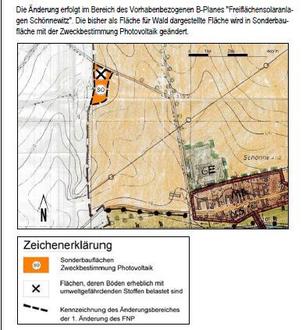 Die 2. Änderung des Flächennutzungsplanes wird für eine Teilfläche durchgeführt und erstreckt sich auf den Geltungsbereich des Vorhabenbezogenen Bebauungsplanes „Freiflächensolaranlage Schönnewitz“.