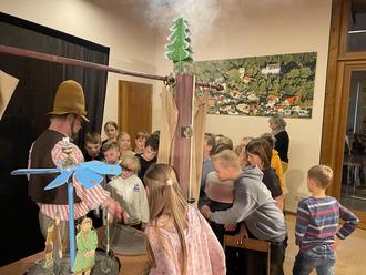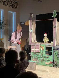 Während der Aufführung „Petterson bekommt Weihnachtsbesuch“ tauchten die Kinder in die Welt des alten Mannes und des quirligen Katers Findus ein. Im Anschluss gab der Schausteller unseren Kindern die Möglichkeit hinter die Kulissen des Ein-Mann-Theaters zu schauen und die selbstgemachten Puppen zu bewundern.