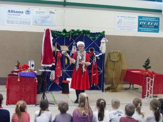 Am schönsten ist es Zeit zum Staunen und Lachen zu verschenken. Dies dachte sich auch in diesem Jahr wieder der Kinderförderverein Liebschützberg e.V. und überraschte unsere Kinder mit Miss Hopkins, das zaubernde Kindermädchen und Gehilfin des Weihnachtsmannes. Mit viel Witz und tollen Zaubertricks begeisterte sie unsere Kinder und sorgte für großes Staunen. Einzelne Kinder durften Miss Hopkins unterstützen um die Aufträge für den Weihnachtsmann zu erledigen. Dabei wurde ganz genau hingeschaut um zu sehen, wie die Tricks funktionieren. Dies gelang jedoch nicht, was immer wieder große Verwunderung auslöste. Die Kinder und auch Lehrer und Erzieher hatten viel Spaß bei diesem tollen Programm.