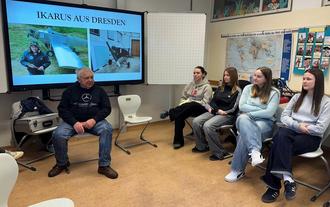 Geschichte Klasse 9 - Die DDR! Sicherlich gibt es genügend Materialien in Büchern und im Netz zu diesem Thema. Viel interessanter ist es doch aber, einen Zeitzeugen vor sich sitzen zu haben, der aus seinen persönlichen Erfahrungen erzählt und den man mit Fragen zum Thema „löchern“ kann. Die 9. Klassen hatten am 14. und 15.01.2026 diese Möglichkeit. Michael Schlosser, geboren 1944, gelernter Automechaniker träumte von einer eigenen Autowerkstatt. Dies wurde ihm vom Staat verwehrt. In den Folgejahren baute er sich ein Flugzeug, um die DDR in Richtung BRD zu verlassen. Seine Aktion wurde an die Stasi verraten, er flog auf und wurde inhaftiert. Nach einigen Jahren wurde er vom Westen freigekauft und konnte auf diesem Weg das Land verlassen. Wie Herr Schlosser sagte, handelt es sich dabei um ein, also um sein Schicksal.