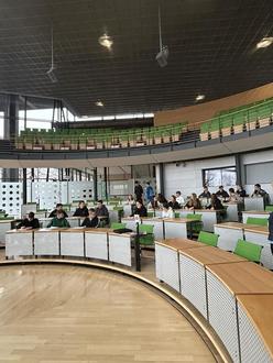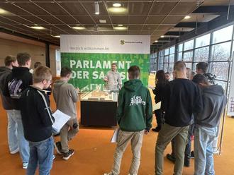 +++ Gemeinschaftskunde mal hautnah erleben – das konnten die Schüler der beiden 9. Klassen bei ihrem Besuch des Landtags im Februar. Neben dem „Reinschnuppern“ in den normalen Geschäftsbetrieb der Abgeordneten und einer Führung durch das Haus war die vorgezogene Neuwahl des Bundestags ein großes Thema. Was bewegt die Politiker auf Landesebene? Wie sieht ein Arbeitstag als Abgeordneter aus? Wie wird man Politiker? Spannende Fragen auf die es vor Ort gleich Antworten gab. +++