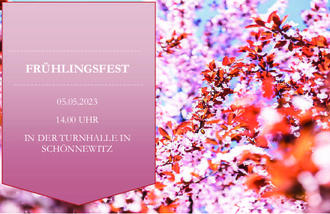 die Gemeinde lädt Sie recht herzlich zum Frühlingsfest ein. Wir erwarten Sie am 05.05.2023 um 14 Uhr in der Turnhalle in Schönnewitz.