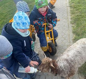 Am 06. März machte sich Frau Buggisch mit Lamm „Felix“ und ihrem Hasen auf den Weg in unsere Kita. Die Kinder waren begeistert, neugierig streichelten sie die Tiere und „Felix“ durfte sogar mit der Milchflasche gefüttert werden.