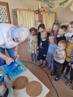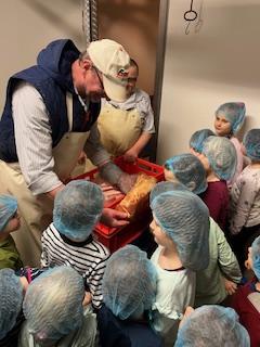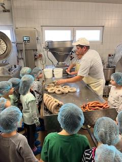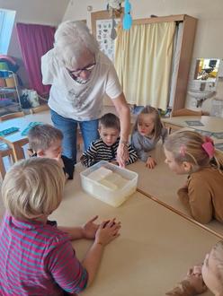 Auch in diesem Jahr nehmen die Kinder der Kita „Zwergenland“ wieder am Kita-Wettbewerb „Kleine Hände – große Zukunft“ der Handwerkskammer Dresden teil. Im Rahmen des Wettbewerbs entdeckten die Jungen und Mädchen verschiedenste Berufe. Justina Gerstenberger aus Merkwitz betreibt die Kleine Seifenmanufaktur „Just-in-a-Dream“ und führte unsere Kinder in die Kunst der Seifenherstellung ein. Jedes Kind stellte unter ihrer einfühlsamen und geduldigen Anleitung ein eigenes Stück Seife her. Den Beruf der Tierärztin stellte uns Nicole Günther sehr praxisnah vor. Sie betreibt die Tierarztpraxis „Zur Niedermühle“ in Oschatz und zeigte uns allerlei medizinische Instrumente, Röntgenbilder und Skelettmodelle. Kranke Kuscheltiere wurden operiert und versorgt. Wer ganz mutig war, nahm sogar einen Blutegel auf die Hand. In der Laaser Agrargenossenschaft erwartete uns Herr Fröhlich. Er führte uns in die hauseigene Fleischerei. Die Fleischer stellten gerade Wurst her und unsere Kinder staunten nicht schlecht, wie aus einem zerlegten Schwein Wurst gemacht wird. Die Wiener Würste schmeckten vorzüglich. Im Hofladen nebenan wurde uns gezeigt, was eine Verkäuferin alles zu tun hat. Vom Verkaufen der frischen Wurst – und Fleischwaren über das Abkassieren der Kunden – alles konnten unsere Kinder miterleben. Frau Schmelter stellte uns dann den Milchautomaten vor. „Die Milch hier drinnen war heute Morgen noch im Euter der Kuh.“ Kindgerecht erklärte sie den Kreislauf der Milch und jedes Kind konnte abgekochte Milch verkosten. Danach ging es zum Kälberstall. Herr Fröhlich erklärte uns alles und dann durften die süßen Kälbchen ausgiebig gestreichelt werden. Die Landmaschinen der Agrargenossenschaft interessierten unsere Kinder sehr und Herr Fröhlich gab uns einen kurzen Einblick in deren Einsatzbereiche. Zum Abschluss ging es in die Bauernstube, wo für uns leckere Nudeln mit Tomatensoße gekocht wurden.