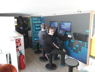 Im Rahmen eines Projektes zu den Themen Glück und Sucht konnten unsere Schüler an 8 interaktiven Stationen, die im Bus installiert waren, ihre Risikobereitschaft und ihre Lebenskompetenzen testen. An der Station 2 „Blue Lounge“ zum Beispiel wurden durch die Nutzung einer VR-Brille die Auswirkungen von Alkohol auf verschiedene Tätigkeiten und Wahrnehmungen erlebbar gemacht. An Station 3 „Glückspost“ war Einzelarbeit gefragt. Als Methode zur Selbstreflexion schrieben und gestalteten die Mädchen und Jungen einen Brief an sich selbst, um Wünsche, Erwartungen und Einstellungen differenziert wahrzunehmen und festzuhalten. Ein gesamter Durchlauf im Bus dauerte 90 Minuten. Die individuelle Nachbereitung erfolgte dann in den einzelnen Klassen. Der Glücksbus ist ein kostenloses Angebot für Schulen und hilft auf sehr anschauliche Art und Weise bei der Suchtprävention.