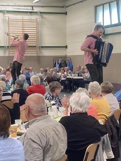Mit großer Resonanz feierten wir gemeinsam mit allen Seniorinnen und Senioren unserer Gemeinde am Freitag, 9. Mai 2025, das diesjährige Frühlingsfest in der Schönnewitzer Turnhalle. Nach dem pünktlichen Eintreffen aller beteiligten zu Fuß, per Fahrrad, per Auto oder mit dem Bus des Unternehmens Busreisen Jahn wurden alle Teilnehmer mit einer kurzen und informativen Ansprache von unsrem Bürgermeister, Herrn Sebastian Sommer, begrüßt. Anschließend wurde mit einem Glas guten Wein auf einen schönen Nachmittag angestoßen. Bei leckeren Kuchen und Kaffee kamen alle an den zehn schön dekorierten Tafeln ins Gespräch. Die Hortkinder der Liebschützberger Grundschule begeisterten alle Besucher mit einem tollen und kurzweiligen Programm. Dabei wurden die Rentner auf das Köstlichste mit Getränken jeder Wahl von den Mitgliedern des SV Borna e.V. bewirtet. Einen musikalischen Höhepunkt boten „De Hutzenbossen“ in erfreulicher Extraklasse dar, so dass ein jeder Mitschunkeln und auch zum Tanzen angeregt wurde. Und nicht zuletzt trug – wie bereits in den vergangen Jahren – unser inzwischen 87-jährige DJ Arndt Frost aus Treptitz mit seinen rundum stimmig aufgelegten alten und neuen Popsongs zur Tanzfreunde und Unterhaltung bei. Mit einem Abendsnack der Art Wiener Würstchen, Heiterkeit und Freude ging für alle ein rundum schöner Nachmittag viel zu schnell zu Ende.