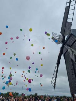 Zum Abschluss schickten die Kinder 100 Luftballons auf die Reise und läuteten damit die Sommerferien ein.