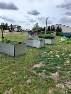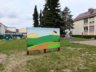 Hier haben sich die Mitarbeiter des Bauhofes richtig ins Zeug gelegt und das Schulgelände beackert. Sie pflanzten Büsche und auch zwei Apfelbäume, ersetzten die alten Hochbeete durch größere und stabilere. Ein Lattenzaun, gefertigt von der Zimmerei Rudolph, fand ebenfalls einen Platz auf dem Gelände. Dieser wurde von der 3. Klasse bunt bemalt und soll noch eine „lange“ Bank zum Verweilen oder Plaudern erhalten. Die Prellwand wurde von der alten Farbe befreit und erhält derzeit eine neue Farbgestaltung. Dies übernahm ein Vati und die Schüler der 4. Klasse im Rahmen der Ganztagsangebote. Vielen Dank.