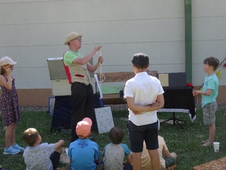 Der Zauberer verblüffte alle Zuschauer mit seinen Tricks und brachte alle mit in seine Show ein. Zum Programmende machte er jedes Kind mit einer beliebigen Luftballonfigur noch glücklicher.