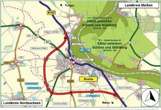 Das Vorhaben „B 182 Ortumgehung Strehla“ ist als Bestandteil des Bundesverkehrswegeplans 2030 in den vordringlichen Bedarf aufgenommen. Der Freistaat Sachsen, vertreten durch das Landesamt für Straßenbau und Verkehr, Niederlassung Meißen plant die Durchführung dieser Maßnahme.