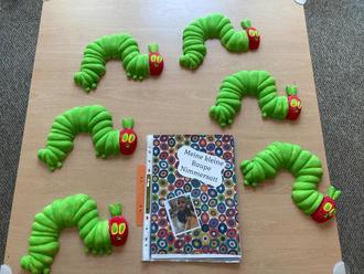 Desweiteren gestalteten die Kinder, im Laufe des Projektes, eine große Schildkröte. Im Tierpark, übergaben stellvertretend, ein Teil der Kinder die Schildkröte. Auch unsere Kleinsten beteiligten sich mit dem Projekt „Die kleine Raupe Nimmersatt“.