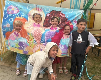 Ende Juni fand das lang erwartete Abschlussfest der Schulanfänger im Kindergarten statt – das Neptunfest. Das Wetter spielte an diesem Tag verrückt, aber es passte perfekt zum maritimen Thema des Festes. Ein wenig Regen war dabei, doch die Sonne zeigte sich auch gelegentlich und ließ den Tag so angenehm werden.