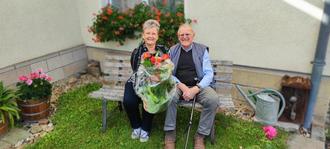 Die Bürgermeisterin überreichte dem rüstigen Jubilar neben einer Grußkarte auch einen Blumengruß, als Zeichen der Wertschätzung und Anerkennung.