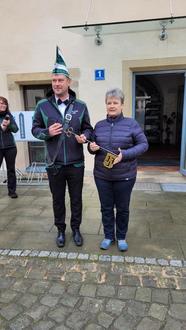 Pünktlich zum 11.11.2025 um 11.11 Uhr kam der Faschingsclub Lohmen e.V. mit Kindern und Erzieherinnen des Kindergartens und wollten den Schlüssel zum Gemeindeamt abholen. Ganz laut haben mich alle mehrmals gerufen und da bin ich natürlich gern herausgekommen.