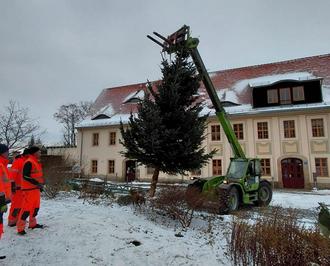 Das Jahr neigt sich dem Ende entgegen und die Weihnachtszeit steht bevor. Auch in diesem Jahr hat der Bauhof der Gemeinde Lohmen, pünktlich vor dem 1. Advent wie jedes Jahr den Baum im Schloßhof aufgestellt. Nach einer kurzen Besichtigung wurde sich für den Baum von Frau Glöckner aus Lohmen entschieden, dafür ein riesiges Dankeschön. Beim Aufstellen konnten wir uns auch in diesem Jahr auf die Unterstützung von der Agrarproduktion "Zur Bastei" GmbH verlassen auch da gilt natürlich ein großer Dank.