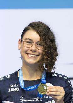 Ein besonderes Highlight in Karlas bisheriger Laufbahn war ihre Teilnahme am European Youth Olympic Festival (EYOF) im Juli dieses Jahres in Nordmazedonien, wo sie gemeinsam mit den besten Nachwuchssportlerinnen und -sportlern Deutschlands an den Start ging. Bereits im Mai überzeugte sie bei den Deutschen Meisterschaften (DM), bevor sie bei den Deutschen Jahrgangsmeisterschaften (DJM) den Titel als Deutsche Jahrgangsmeisterin über 100 Meter Freistil (100F) errang.