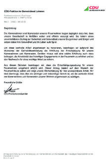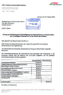 33-02/2023 Antrag CDU-Fraktion zur Erhöhung der Entschädigung der Kameradinnen und Kameraden der Freiwilligen Feuerwehren in der Gemeinde Lohmen