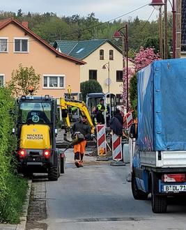 Zügig wird an der Verlegung des Breitbandes gebaut, teilweise mit unterschiedlichen Arbeitstrupps. Einschränkungen und kurzfristige Straßensperrungen sind nicht vermeidbar.