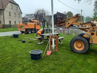 Im Zuge der Erneuerung einiger Wanderbänke, womit die Gemeinde bereits 2019 begonnen hat, erstrahlt nun auch am Dorfplatz im Ortsteil Daube eine neue Bank das Ortsbild.