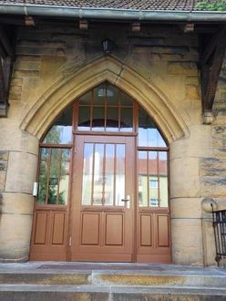 Haben Sie schon bemerkt, dass die Alte Schule eine neue Eingangstür hat? Aber nicht nur eine, sondern gemäß den Vorgaben des Denkmalschutzes wurde diese angefertigt und ist ein Schmuckstück geworden.