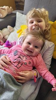 Tochter von Claudia und Sebastian Haupt, mit ihrer Schwester Gwendoline