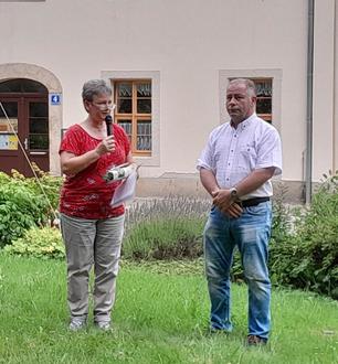 Dieser Sommerempfang bot den würdigen Rahmen, für die offizielle Verabschiedung des ehemaligen Gemeindewehrleiters Marco Schütze und seinem Stellvertreter Kai-Uwe Hoyer. Beide hatten in diesem Jahr ihre Ämter niedergelegt. Bürgermeisterin Großmann dankte ihnen für die langjährig geleistete Arbeit, für die vielen Stunden ihrer Freizeit, für das große Engagement und das Verständnis der Familien. Sie erhielten einen Gutschein für einen kleinen Teil der gemeinsamen Zeit mit den Partnerinnen als Geschenk. Beide bleiben weiterhin der Freiwilligen Feuerwehr treu.