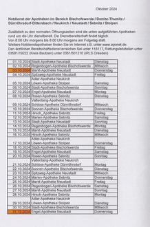 | Apotheke Demitz-Thumitz | Hauptstr. 45 | 03594 713125 | 01877 | Demitz-Thumitz |