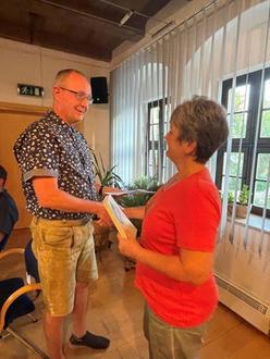 Statt Blumen erhalten auch diese Gemeinderäte das „Taschenbuch für die Ratsarbeit“ vom Sächsischen Städte- und Gemeindetag in der aktuellen Ausführung.