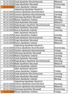 | Apotheke Demitz-Thumitz | Hauptstr. 45 | 03594/713125 | 01877 | Demitz-Thumitz |