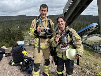 Mit voller Feuerwehrschutzbekleidung samt Atemschutzgerät machten sie sich daran, die 701 Stufen und 120 Höhenmeter zu bezwingen. Die unterschiedliche Steigung und Beschaffenheit der Stufen stellten dabei eine anspruchsvolle Herausforderung dar.