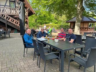 Anlässlich des bevorstehenden 600-jährigen Vereinsjubiläums der Schützengilde zu Lübben 1425/1990 e. V. trafen sich Harry Bogula, Manfred Zimmermann sowie Hans-Jörg Tarnow am 25. April 2025 nochmals mit Gastwirt Frank Fellmerk vom Gasthaus Lehnigksberg. So wurden in Vorbereitung auf dem 14. Juni weitere Einzelheiten zur Bewirtung der Gäste besprochen.
