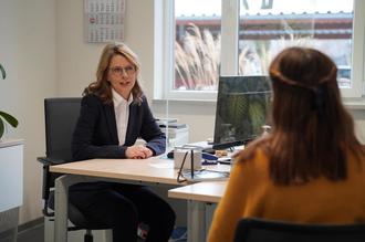 WIS-Mitarbeiterin Anja Kühne informiert über soziale Unterstützung