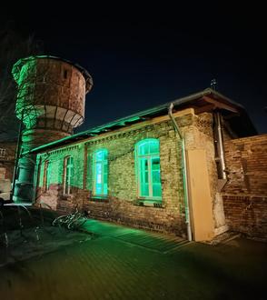 In diesem Jahr wurde das GLEIS 3 in grünes Licht getaucht. Mit dieser Beleuchtung soll ein deutliches Zeichen gegen die Anwendung der Todesstrafe gesetzt und auf die Bedeutung des Schutzes der Menschenwürde aufmerksam gemacht werden.