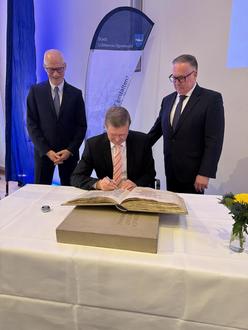 Landrat Siegurd Heinze wurde mit der Eintragung ins Goldene Buch der Stadt geehrt.