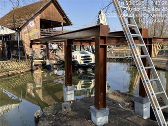 Baufortschritt der Dreiseitenbrücke in Lehde