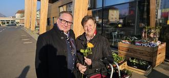 Bürgermeister Helmut Wenzel und CDU-Fraktionsmitglied der Lübbenauer Stadtverordnetenversammlung Christina Balke übergaben vor dem Einkaufsmarkt Rewe Rosen an Frauen und drückten damit ihre Anerkennung und Dank für den Einsatz und das Engagement der hier lebenden Frauen aus. Dies sei eine Aufmerksamkeit für das täglich Geleistete.